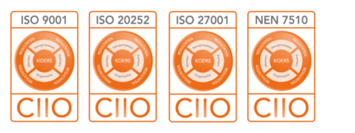 - Veilig en onafhankelijk (gecertificeerd voor de certificaten ISO 9001, ISO 20252, ISO 27001, NEN 7510 voor ons KMS en ISMS)